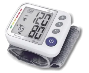 FZ·158 AU·Automatic digital wrist blood pressure monitor with cuff positioning detector. Self-inflating. One-touch function. Measurement method: Oscillometric. Display: Large liquid crystal display. Pressure measurement range : O-300 mmHg. Heart rate measurement range : 40-199 beats/min. Memory: 240 memories in total for 2 users . Automatic switch-off: after 1 minute. Wrist circumference: 13.5 – 19.5 cm. Power supply: 2 AAA alkaline batteries (1.5 V). Protective case. Pressure indicator according to the WHO table. Warranty years: 3. Accessories included: Protective case, Two AAA alkaline batteries “LR03” (1.5 V).